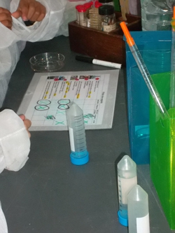 A travers une enquête menée sur les pollutions, les enfants ont pu se rendre compte que tout le monde peut polluer le milieu marin, sans en être forcément conscient. Habillés de blouses blanches, de lunettes anti-projection et munis de pipettes et de tests pH, les enfants ont réalisé une série de tests, à la manière d’une police scientifique. Ces mesures leur ont permis d’avoir une première approche des différences entre une eau saine et une eau polluée. Ensuite un débat s’est engagé entre les enfants et l’animateur afin de connaître les éco-gestes qui préservent la mer, comme utiliser des transports en communs pour limiter l’émission de CO2.